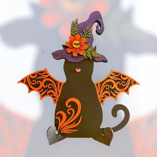 Bat Cat w/ Witch’s Hat Shelf Sitter