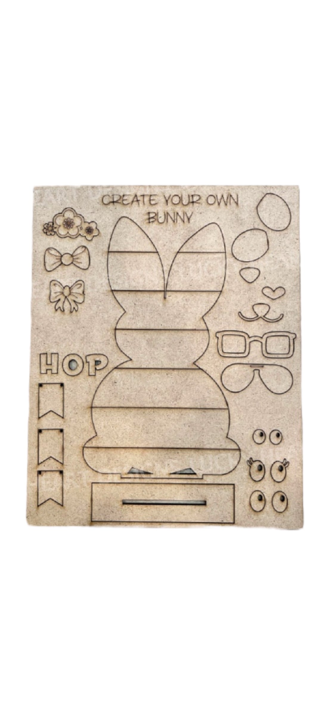 Get creative this Easter with our Easter Bunny DIY Kit! Perfect for kids and families, this fun craft kit lets you decorate your own wooden bunny with cute cut-out props like glasses, flowers, bows, and more.